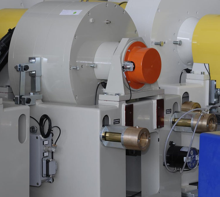 高速大功率電渦流測功機,主要用于軍品試驗,例如測試航空渦輪軸、渦輪槳發動機的轉速扭矩功率。通過調節測功機線圈電流來改變扭矩值,冷卻水壓力波動不影響測量精度,工況特別穩定。